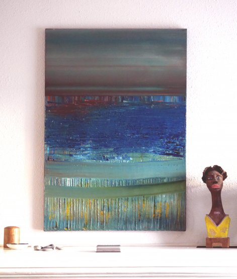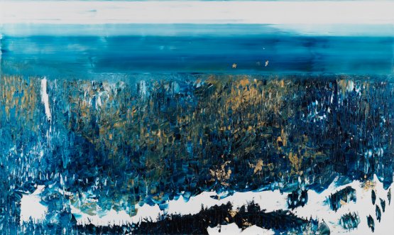 Le grand bleu du triptyque aux renards, 2012, acrylique et huile de lin sur toile, 130 x 195 cm.